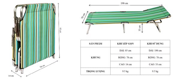 Thông Số Giường xếp Inox