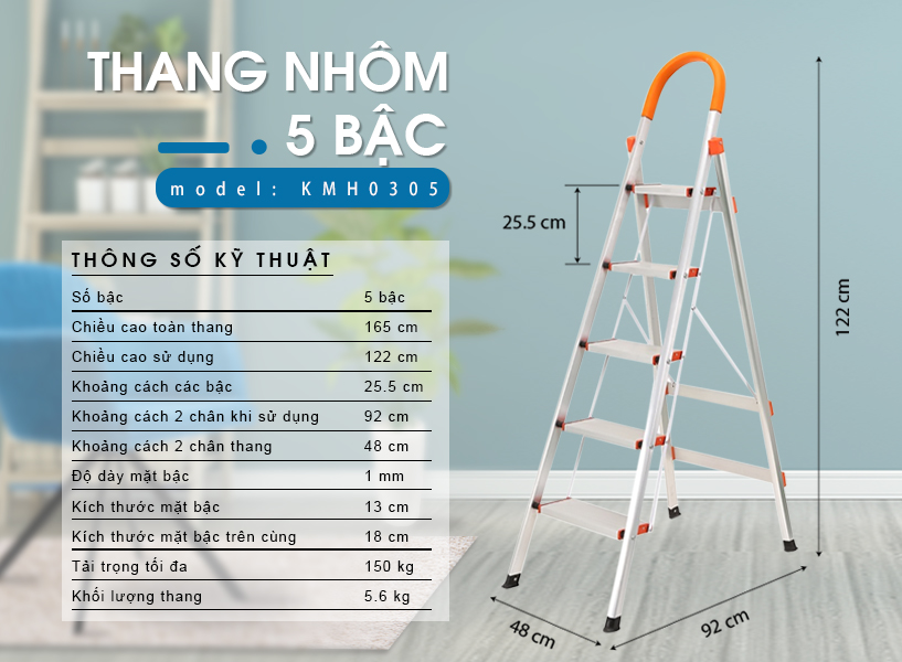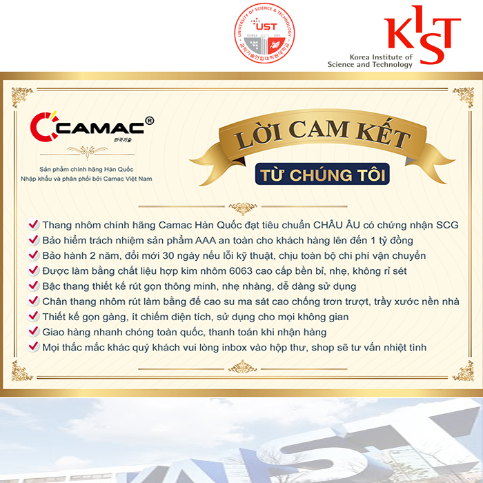 Đặc tính sản phẩm hang nhôm ghế 5 bậc CAMAC hàn quốc thang cao cấp bảo hành 24 tháng có tay vịn hàng nhập khẩu tiêu chuẩn EU131 inox 304