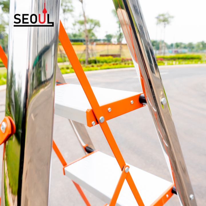 • Thang ghế gấp được nhập khẩu 100% từ nước ngoài, và được sản xuất trên công nghệ dây chuyền hiện đại của Hàn Quốc. Sản phẩm luôn đạt các tiêu chuẩn chất lượng hàng đầu của Châu Âu. • Chất liệu được làm bằng hợp kim nhôm rất chắc chắn và bền vững. Ngoài ra sản phẩm được sơn phủ bằng lớp sơn tĩnh điện giúp chiếc thang luôn sáng bóng như mới và không bị oxy hóa như các loại thang phổ thông hay thang sắt trước đây. • Bản thang được thiết kế rộng và thêm 3 đường chỉ tăng ma sát, giúp việc sử dụng, leo trèo tăng thêm phần chắc chắn cũng như thẩm mỹ. • Thiết kế 5 bậc thang giúp bạn dễ dàng vươn cao và sử dụng cho nhiều mục đích. Đồng thời, với thiết kế gọn nhẹ, dễ thao tác và gấp gọn sau khi sử dụng, giúp tiết kiệm diện tích cất trữ. • Các nút bịt được chế tạo bằng nhựa, chân thang có đế nhựa, chống trượt, tạo cho thang có hình dáng đẹp hơn, an toàn cho người dùng.
