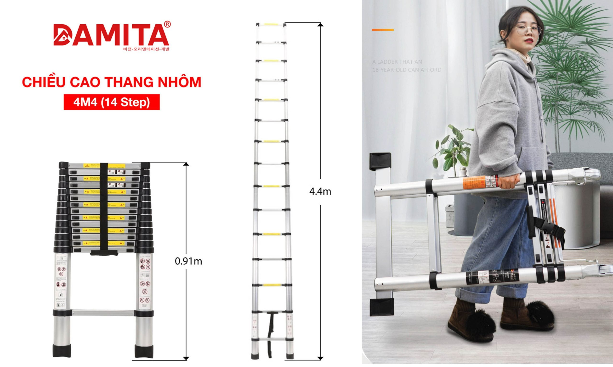 ☑️ Thang Nhôm Rút đơn 4met4 DAMITA DNS44 Chính Hãng