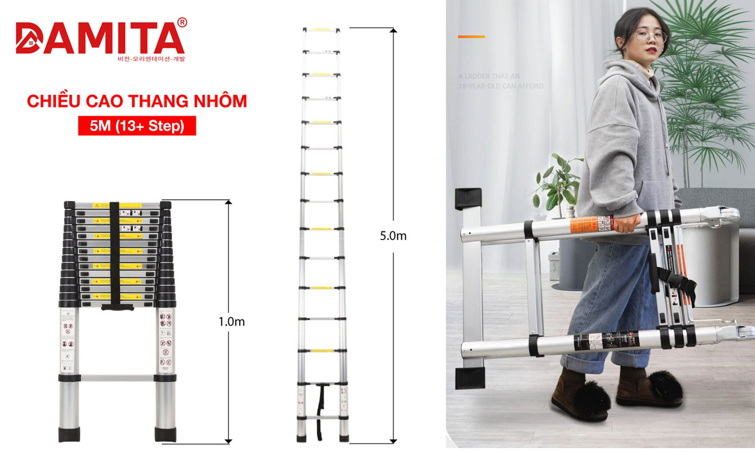 Thang Nhôm Rút DAMITA 3met2 DNS50 Cao cấp rút gọn thông minh Có Khối lượng nhẹ di chuyển dễ dàng
