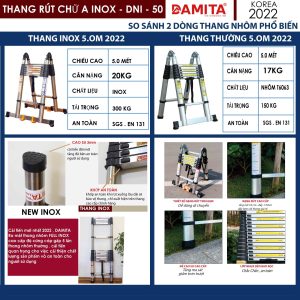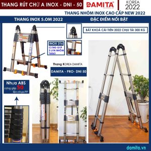 Thang Rút Đôi Chữ A INOX DNI-38 rút gọn mới 2022 inox 316